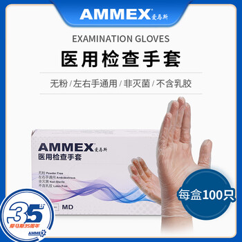 爱马斯(AMMEX)GPX3M 一次性检查手套 PVC透明清洁护理 定做 M码 100只/盒