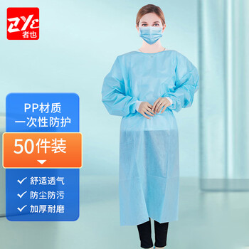 者也(ZYE)一次性加厚PP无纺布反穿衣透气防尘工作服螺纹袖口隔离衣蓝色 加厚隔离衣50件