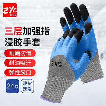 者也(ZYE)发泡手套防滑透气浸胶工作手套 加强涂指 蓝灰色 24双