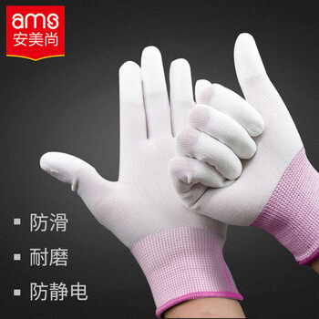 安美尚(ams)PU涂指手套涂指劳保手套尼龙防护耐磨透气无尘修车机械 定做 20副装 S码
