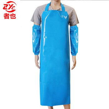 者也 30丝围裙+袖套 蓝色TPU耐酸碱防水防油水产加工屠宰厨房罩衣可定制