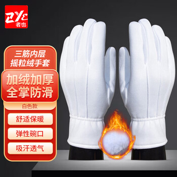 者也(ZYE)礼宾阅兵手套 男女三筋白手套 保暖防寒白手套 冬季加绒厚礼仪手套三筋棉手套 白色 L码