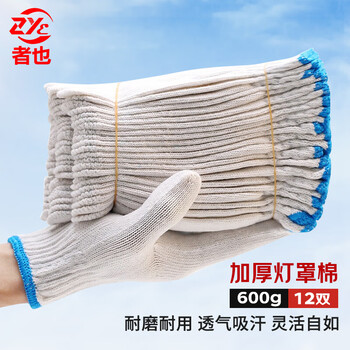 者也 12双劳保手套加厚防滑耐磨 棉纱线防护手套 灯罩棉加厚AF600