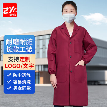 者也(ZYE)劳保服搬运防尘服 实验室男女长袖大褂 加厚涤棉蓝大褂 工作服大褂工装 工厂罩衣 枣红