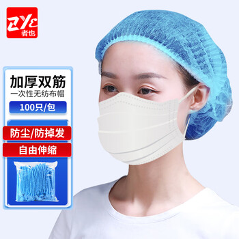 者也 一次性无纺布帽子30克加厚35克圆帽头套扁筋松紧帽透气防尘防护帽 白色【20g】