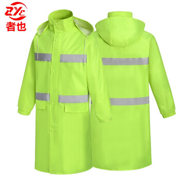 者也 长款雨衣 加厚劳保户外反光雨披 荧光绿春亚纺风衣式 2XL码