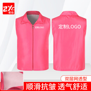 者也(ZYE)个性定制拉链马甲志愿者工作服成人男女款宣传背心LOGO可印字 双层复合型玫红色马甲 4XL码