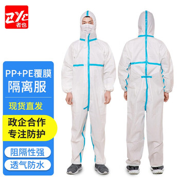 者也(ZYE)全身连体连帽防护服一次性双层覆膜封蓝胶压胶隔离防护衣 覆膜封蓝胶隔离服 L码