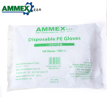 爱马斯(AMMEX)PGLOVE100C-2 一次性PE薄膜手套无粉透明 均码10袋(100只/袋)