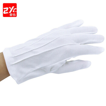 者也(ZYE)礼仪手套 加厚棉汗布劳保手套检阅表演白手套 三筋涤棉点塑10双