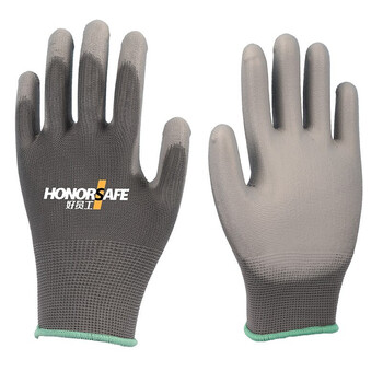 好员工 PU浸胶手套T505 防滑耐磨 乳胶挂胶半挂 胶皮工业劳保手套 100付M码