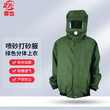 者也 加厚帆布连体防护服厂房磨砂打砂防尘装备 绿色分体上衣2XL码