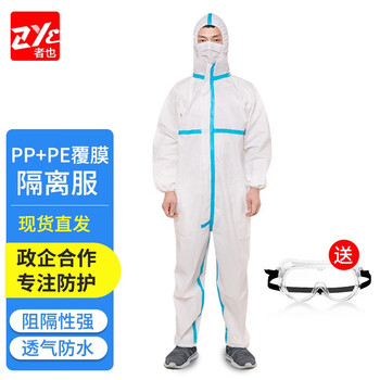 者也 一次性连体连帽防护服防水全身隔离防护衣复工隔离服可重复使用 PP+PE双层覆膜 隔离服+护目镜 XL码