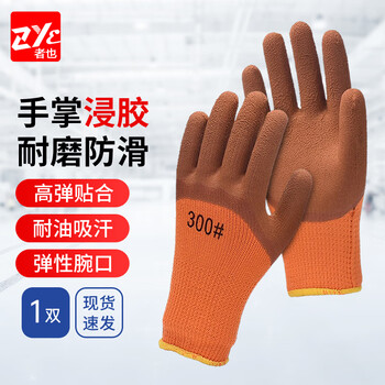者也(ZYE)加强指发泡手套 透气挂胶防滑手套 毛圈咖橙色 1双