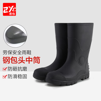 者也(ZYE) 中高筒钢头防砸劳保胶鞋工地安全防滑防刺 钢头中筒(防砸) 38码