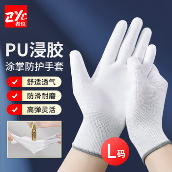 者也(ZYE)防静电手套 涂掌L码 薄款防滑贴手PU涂层浸胶尼龙手套