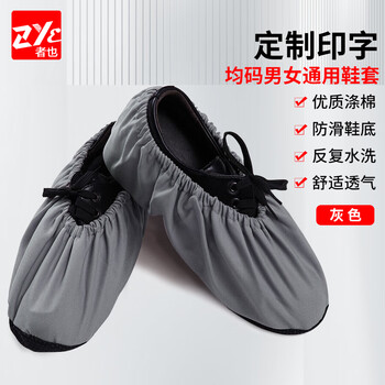 者也(ZYE)透气防尘鞋套棉布防滑底鞋套可反复洗 灰色