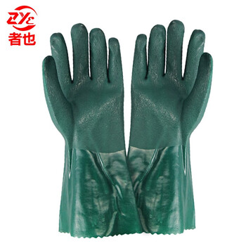 者也 PVC工业磨砂手套 化学加工清洁耐磨耐酸碱防油防滑手套 绿色