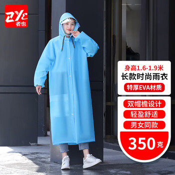 者也(ZYE)EVA长款带帽雨衣 半透明磨砂户外旅行非一次性雨披 暴雨款双帽檐(蓝色)