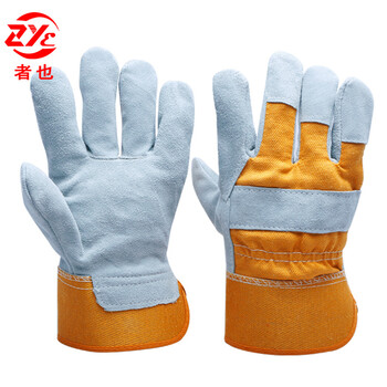 者也 3双电焊手套牛皮耐磨加厚耐高温短款短皮焊接焊工劳保手套防烫 黄灰