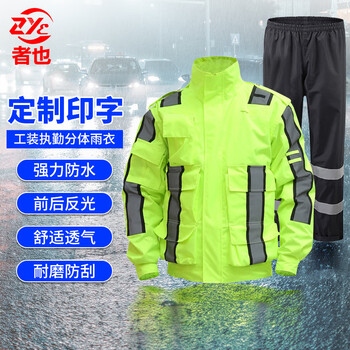 者也 新式交通执勤警示制服反光雨衣新式摩托车骑行雨衣加厚防水服防暴雨雨衣套装可定制logo 工装M码027