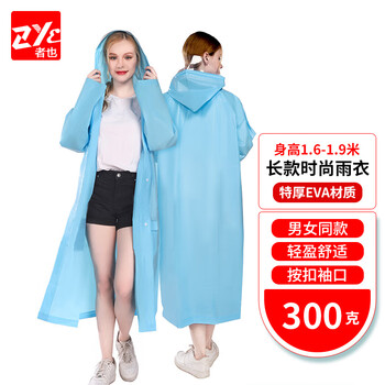 者也(ZYE)EVA长款带帽雨衣 半透明磨砂户外旅行非一次性雨披 特厚款单帽檐(蓝色)