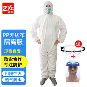 者也(ZYE)一次性PP隔离衣连体带帽防护服农药喷洒畜牧养殖工作无纺布防尘防飞沫隔离服+防护镜+面屏 L码