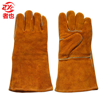 者也 牛皮电焊手套 黄色隔热焊接半皮加长劳保革袖 双层加厚1付