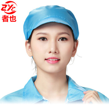 者也 防静电帽子 8个 蓝色无尘车间小工防灰尘劳保男女