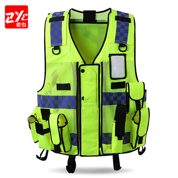 者也(ZYE)可定制 交通警示反光背心 多功能执勤网眼透气耐磨安全服巡逻反光马甲骑行多兜网眼 XL码170-175