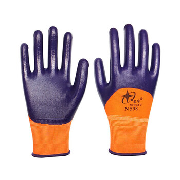 星宇(XINGYU)N598劳保手套尼龙丁腈浸胶防滑耐磨防油半挂透气薄款机械劳作手套12付 M码