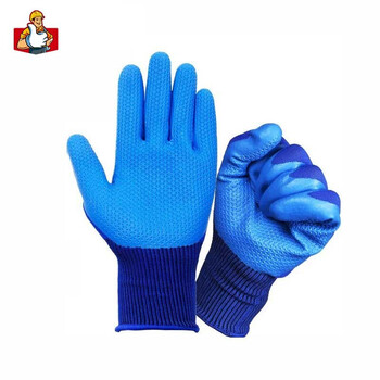 者也(ZYE)尼龙浸胶劳保手套 防滑挂胶压纹皱纹加厚耐油胶皮防护手套 压纹蓝胶 24双