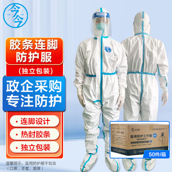今今 一次性胶条防护衣连体连帽防水防尘防护服连脚款50件/箱 L码(175-180cm)