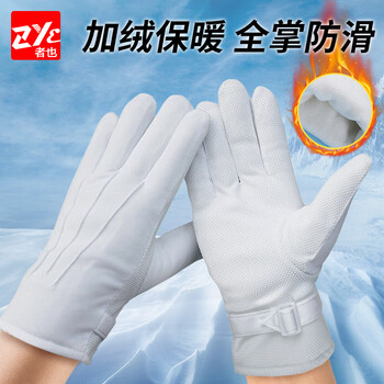 者也(ZYE)执勤阅兵加绒厚手套 三筋点胶防滑棉手套 白色 L码