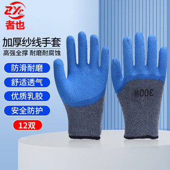 者也 12双浸胶手套 加厚防滑带胶皮棉线透气皱纹防滑手套 灰纱蓝