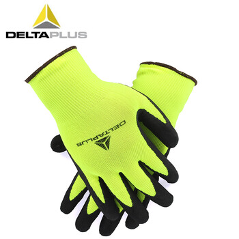 代尔塔(Deltaplus) 201733 工作荧光劳保手套 乳胶涂层耐磨抗撕裂强 透气 棉纱13针织 8码 12双/包 定做