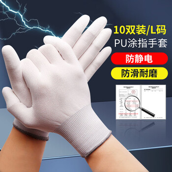者也 防静电手套 PU涂指无尘车间透气劳保手套 独立包装L号10双