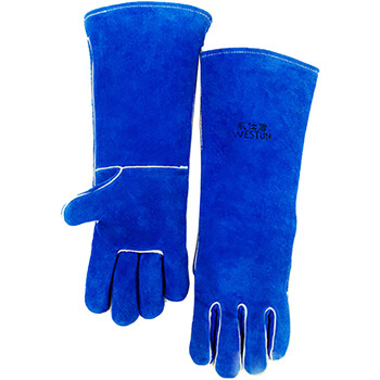 威仕盾(WESTUN)G-2054 45CM加长 牛二层皮防火线加长电焊手套 彩蓝色 L码 1副