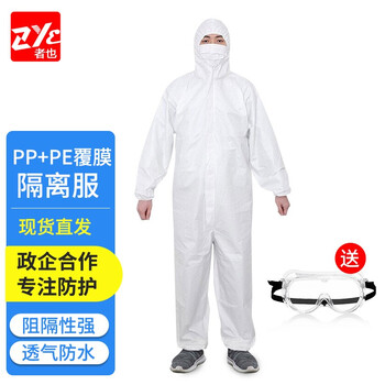 者也(ZYE)一次性连体连帽PP+PE防护服复工隔离服可重复使用双层覆膜 隔离服+护目镜 L码