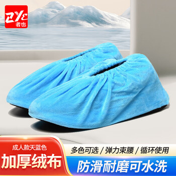 者也(ZYE)加厚绒布鞋套可反复洗防尘鞋罩耐磨防滑底室内地板脚套学生机房鞋套样品房鞋套 天蓝色