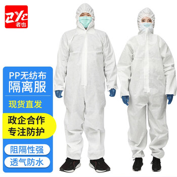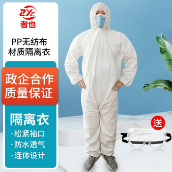 者也 一次性无纺布PP隔离衣防尘防飞沫全身连体带帽防护服农药喷洒畜牧养殖工作服 隔离服+防护镜 2XL码