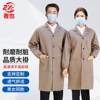 者也 工作服大褂工装劳保服搬运防尘服实验室大褂加厚涤棉蓝大褂 工厂罩衣 卡其