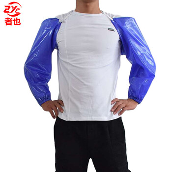者也 加长防油袖套 1双 蓝色PVC防水水产挂脖防污耐弱酸碱长款 车间工厂厨房