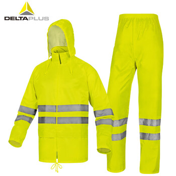代尔塔(DELTAPLUS)407400荧光雨衣套装PVC涂层涤纶面料反光衣上衣+裤子黄色XXL码1套