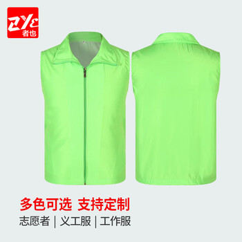 者也(ZYE)个性定制拉链马甲志愿者工作服成人男女款宣传背心LOGO可印字 单层复合型绿色马甲 2XL码