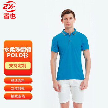 者也 夏季工装广告文化POLO衫弹力棉翻领短袖可定制logo印字 6880款孔蓝 L码