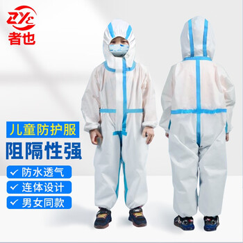 者也 少儿一次性防护服覆膜无纺布热压胶条连体连帽防护服 儿童一次性防护服L码/140cm