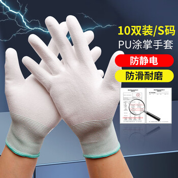 者也 防静电手套 10双 尼龙PU涂掌无尘车间透气劳保手套 独立包装 S号