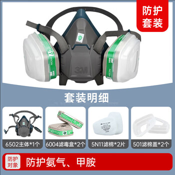 3M6502硅胶防毒面具 防有毒气体 活性炭面具配6004滤毒盒7件套