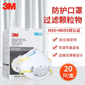 3M 9541V防雾霾粉尘喷漆异味活性炭带阀KN95口罩耳带式20装DKH